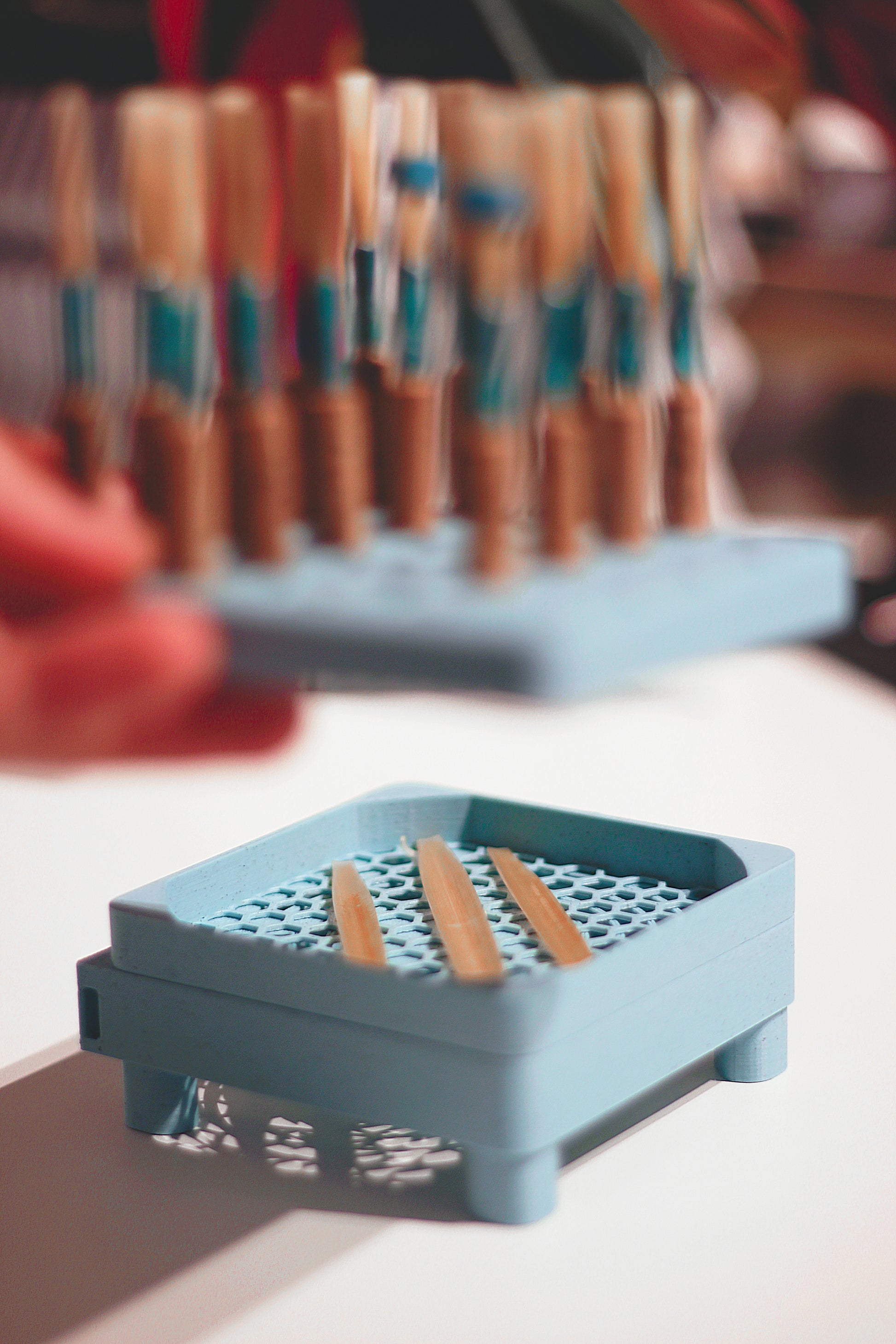 The Basic Drying Board is a compact and portable tool designed for drying up to 25 reeds for oboe and cor anglais. Its top part is lightweight and easy to carry, making it perfect for oboists who need a simple and effective drying solution. The holes are designed for easy reed removal, ensuring a hassle-free experience.